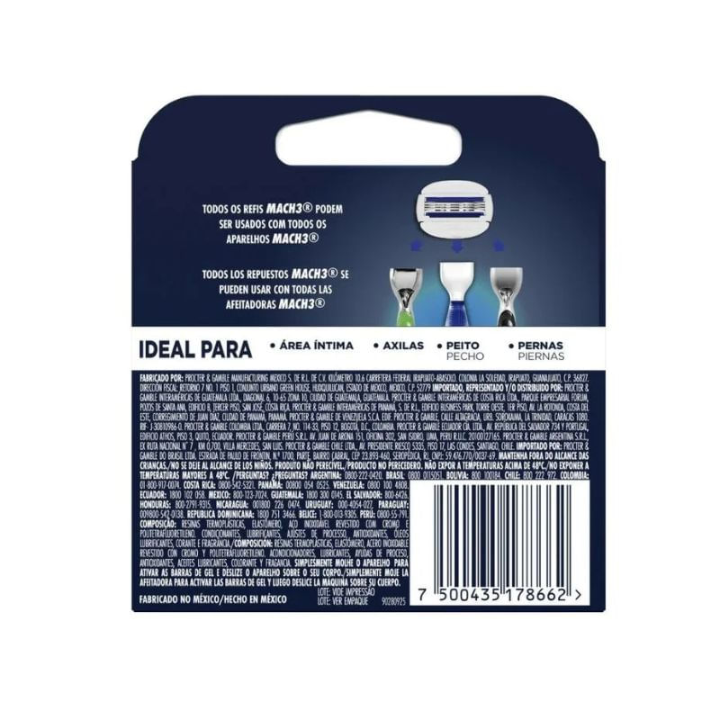 Embalagem com 2 unidades de cargas para o aparelho Gillette Mach3 Corpo.​