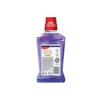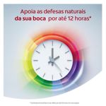 Encha a tampa de enxaguante bucal até a linha tracejada e realize bochechos por 30 segundos. Efetue esse procedimento após a higiene bucal, até 2 vezes ao dia