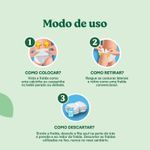 Coloque a fralda passando pelas pernas do bebê e ajustando na cintura. Para remover, rasgue as laterais e descarte após o uso