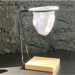 Coloque o pó de café no coador, despeje água quente e deixe coar na xícara apoiada no suporte de madeiro abaixo do coador