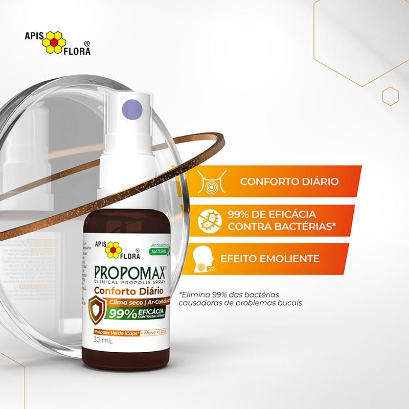 Devido à combinação de ingredientes ativos naturais, o Propomax® Clinical Conforto Diário oferece a proteção ideal contra os efeitos do clima seco e do ar-condicionado, promovendo hidratação e alívio para a garganta ao longo do dia
