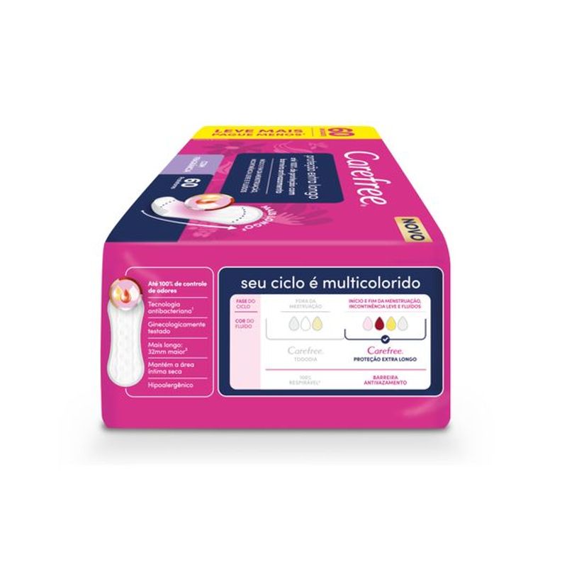 Protetor Diário sem Abas Longo com Perfume Carefree Proteção Extra Pacote 60 Unidades