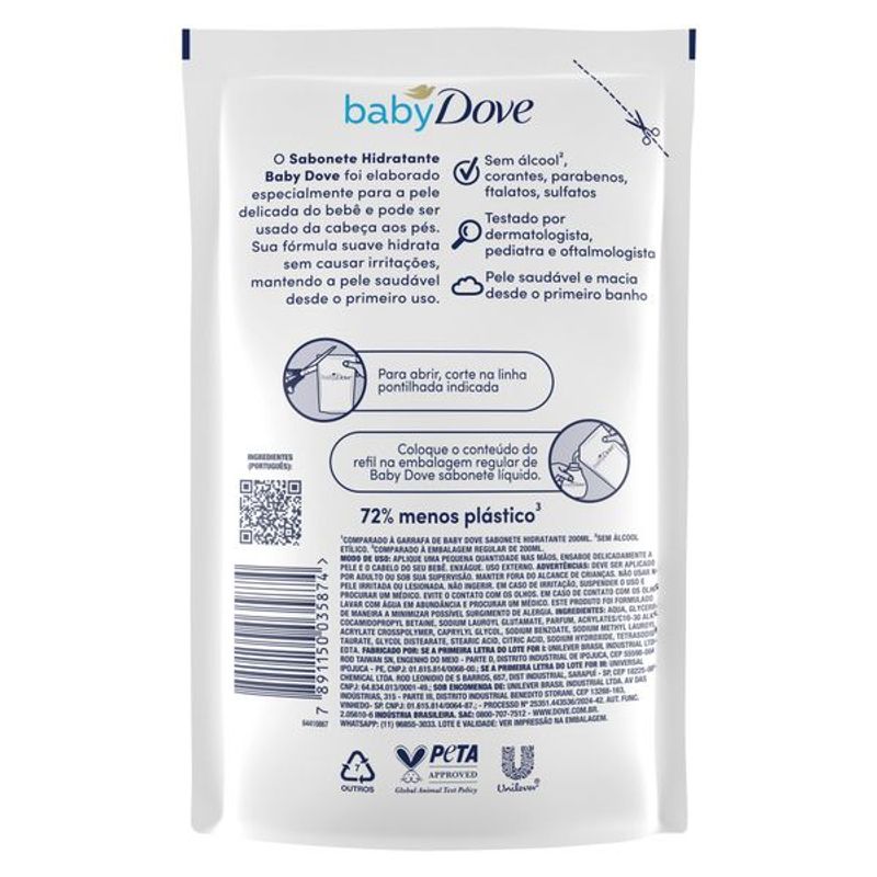 Sabonete Líquido Dove Baby Hidratação Enriquecida Refil 180ml