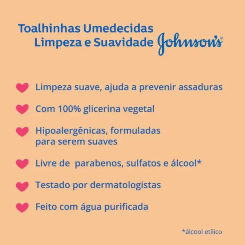 Lenços Umedecidos JOHNSON'S® Baby Limpeza e Suavidade, 44 unidades